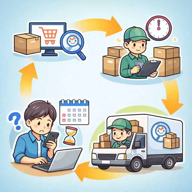遅いとついクレームを入れたくなります。でも、発送・配送って責任が各段階で変わるので、先に確認したほうが結果的に早いです。私も購入者からクレームが来る時は「まだ倉庫なのか、もう配送会社なのか」を切り分けるだけでもスムーズに解決することが多いです。